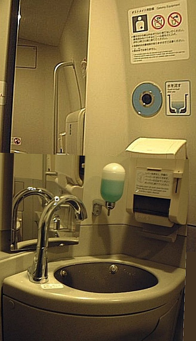 | N700系新幹線にオストメイト対応トイレがもうけられました。上のほうに注意書がありますが、これはオストメイトのためのトイレです。洗顔などのための設備ではありませんので、念のため。 | ||||