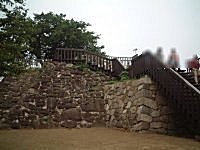 天守閣真下までもう一息のところに石段がありました。写真の位置が今回の車椅子での中津城最高到達地点です。 |