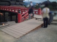 | 松本城への車椅子登城者のために木製スロープ通路の修理が行われていました。ありがとうございます。 | ||||